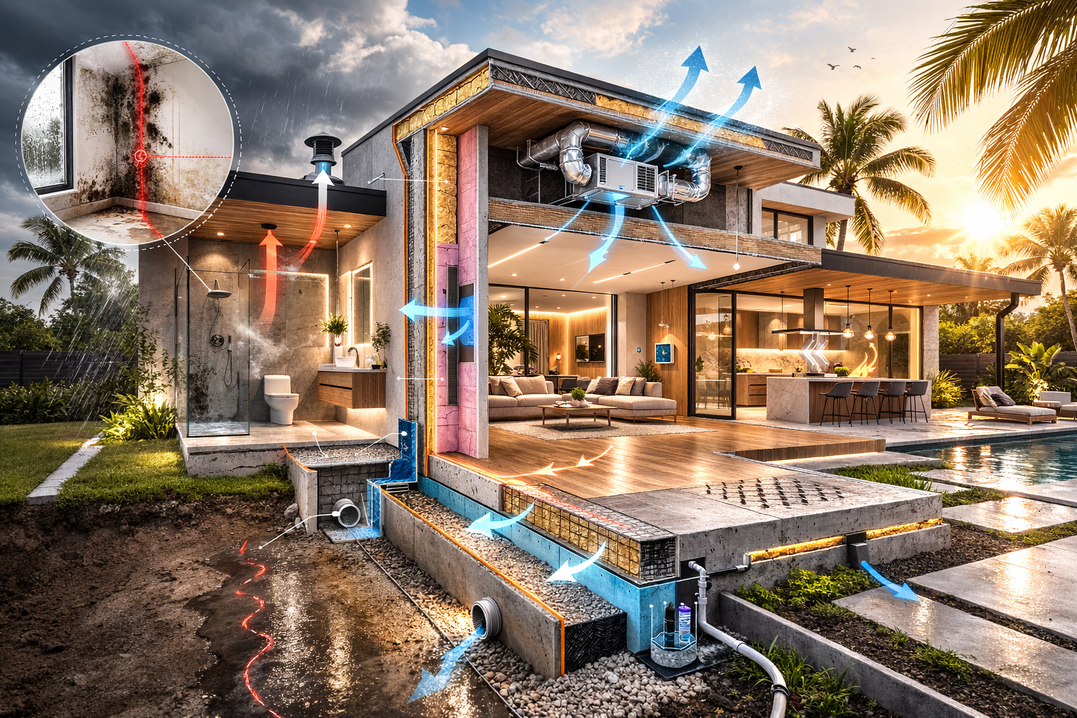 Mold doesn’t show up by accident—it shows up where the building allows moisture to linger. In South Florida, that’s almost always tied to design decisions: where the dew point lands inside your wall, how air is moving (or not moving), and whether your assemblies can actually dry. If you’re relying on “maintenance” to solve mold, you’re already too late. The real fix happens on the drawing set.